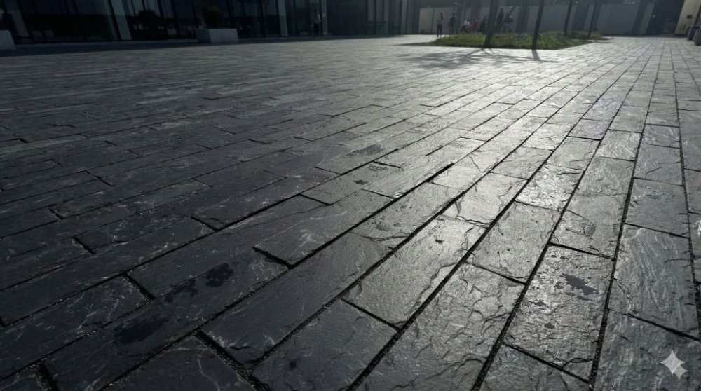 Брусчатка чёрная из натурального камня 30 см * 10 см, толщина 30 мм -50 мм